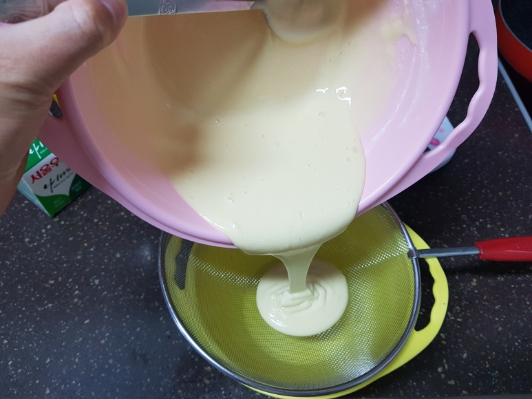 뭉쳐있는 반죽을 걸러내고, 계란의 알끈을 제거해주기 위함이에요!