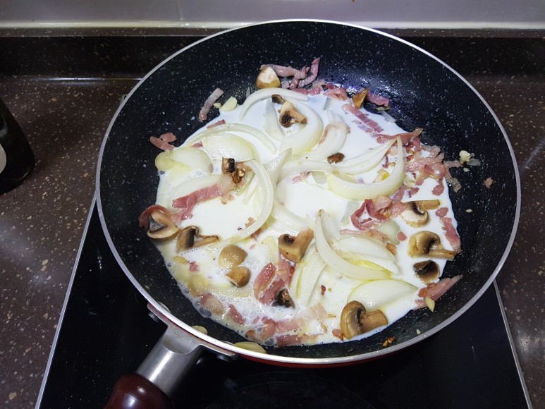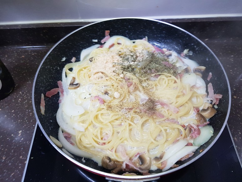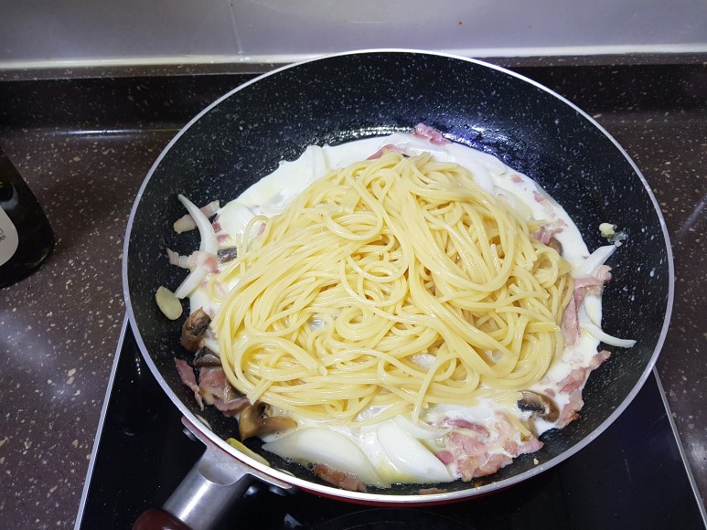 다음에는 크림이 들어간 크림 파스타도 보여드리고, 크림이나 우유를 넣지 않고 까르보나라를 보여드릴게요!