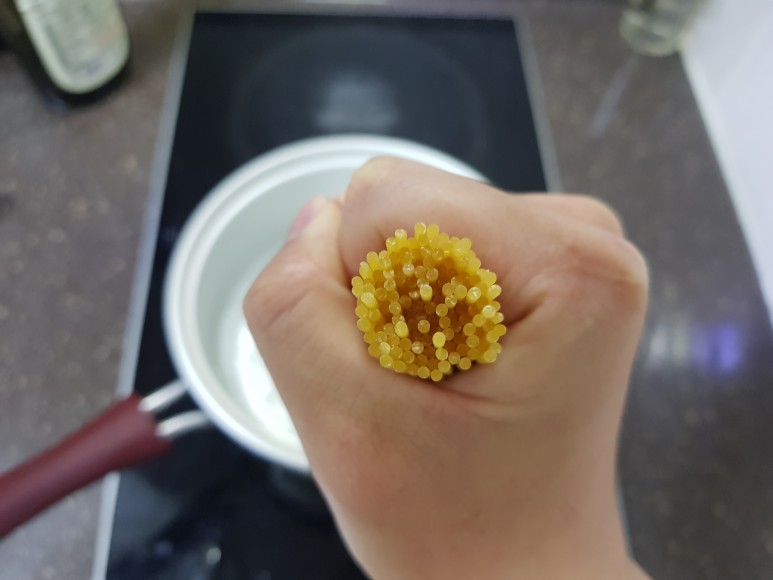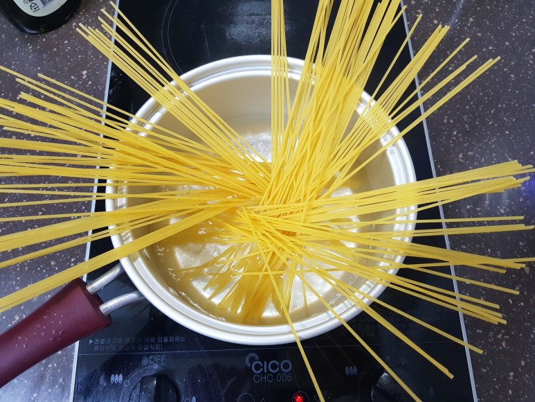 스파게티 면 (손으로 쥐었을 때 500원 짜리 크기만큼 잡히는 것이 1인분 기준입니다)