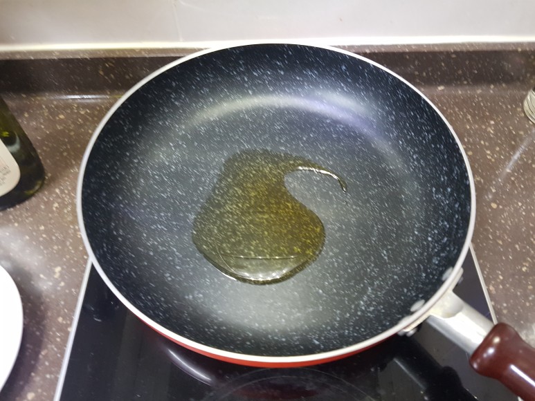그리고 면이 어느정도 익었다면, 프라이팬에 불을 올리고 올리브유를 둘러주세요.