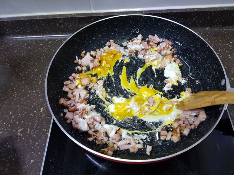 계란 넣고 몇 번 휘저은 후에 그냥 바로 밥 넣었어요.