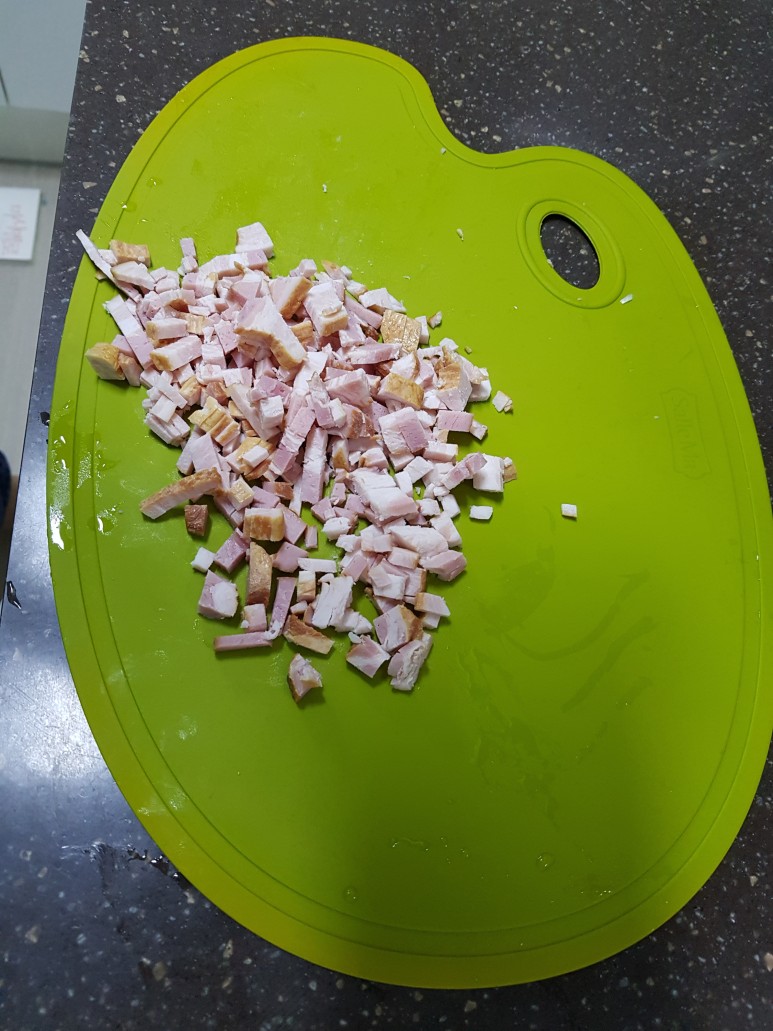 햄도 넣을 거라 햄도 썰어줬어요. 넣을 재료 더 있으면 저렇게 잘게 썰어주시면 됩니다.