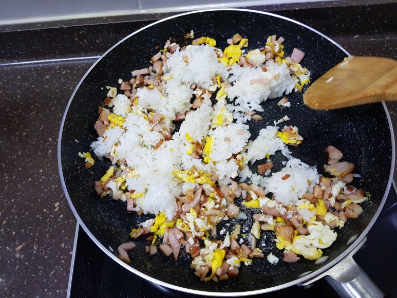 밥이 뭉치는 곳이 없게 잘 부수면서 볶아주세요.