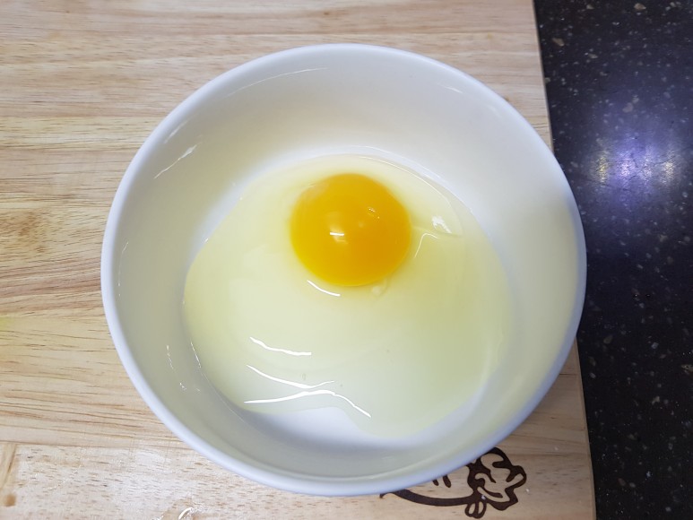 아, 꺼내기 전에 빈 그릇에 계란을 까주세요!