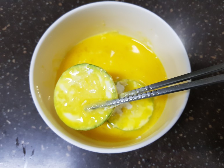 애호박에 계란 옷을 입혀줍니당.