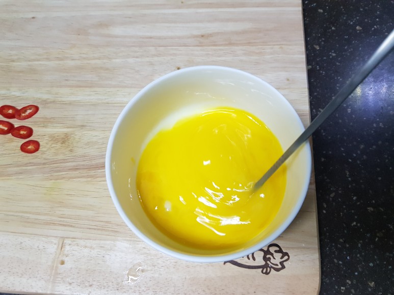 잘 저어서 흰자와 노른자를 합쳐주세요.