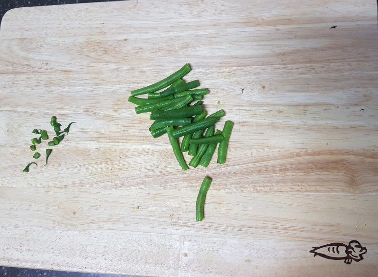 그린빈스도 양 끝 부분 날린 후에 반으로 잘라줬어요. 한입크기로 해줄려구요.