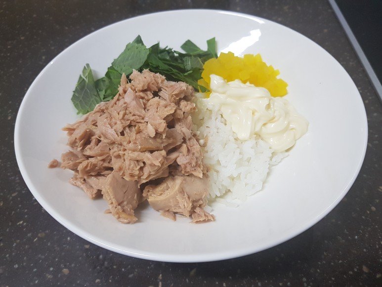 다음날 식사에는 참치마요 덮밥으로 먹었어요.