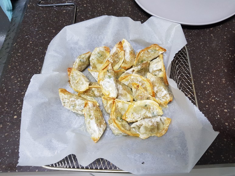 만두는 기름을 약간 둘러서 에어프라이어에 180도 10분 , 뒤집어준 후 180도 7분 돌렸어요.
