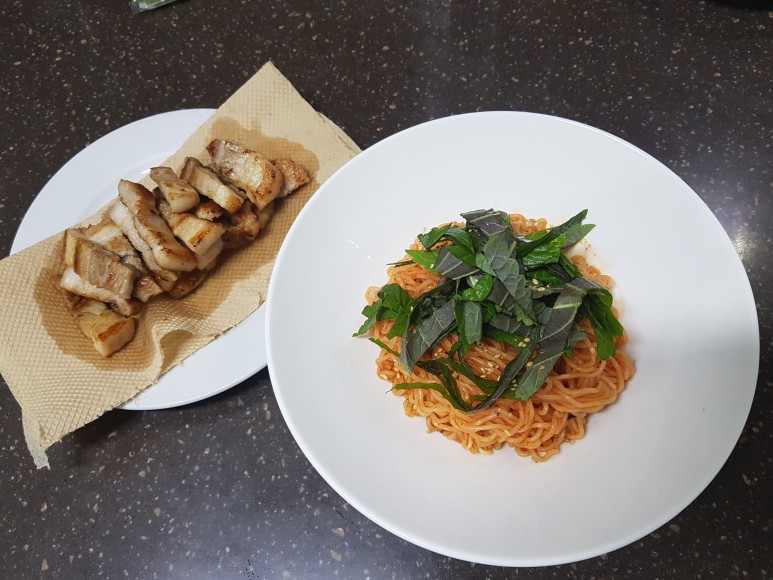 그리고 비빔면은 삼겹살이랑 또 황금 궁합이죠~